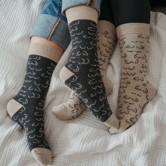Introducing the new Boobie Sock - Pack of 2. Shop this collection and join us in donated 5% of proceeds from each sale this Breast Cancer Awareness Month
