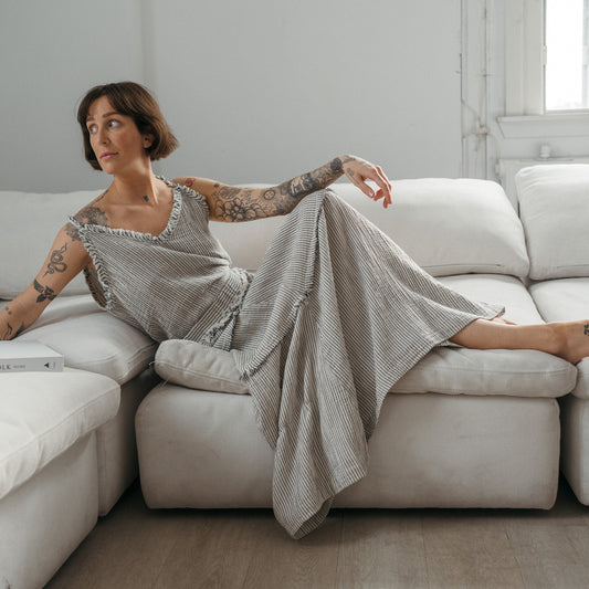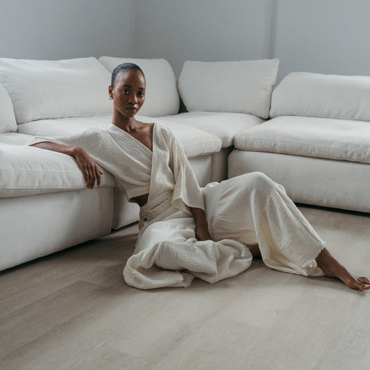 This is loungewear without limits! Made from ultra-soft Turkish cotton, easy to pack for travel, made using the most sustainable garment-dyeing practices. This collection features items easy to mix-and-match with your existing wardrobe, and offer a luxe-feeling Crinkle Set by pairing tops and bottoms.