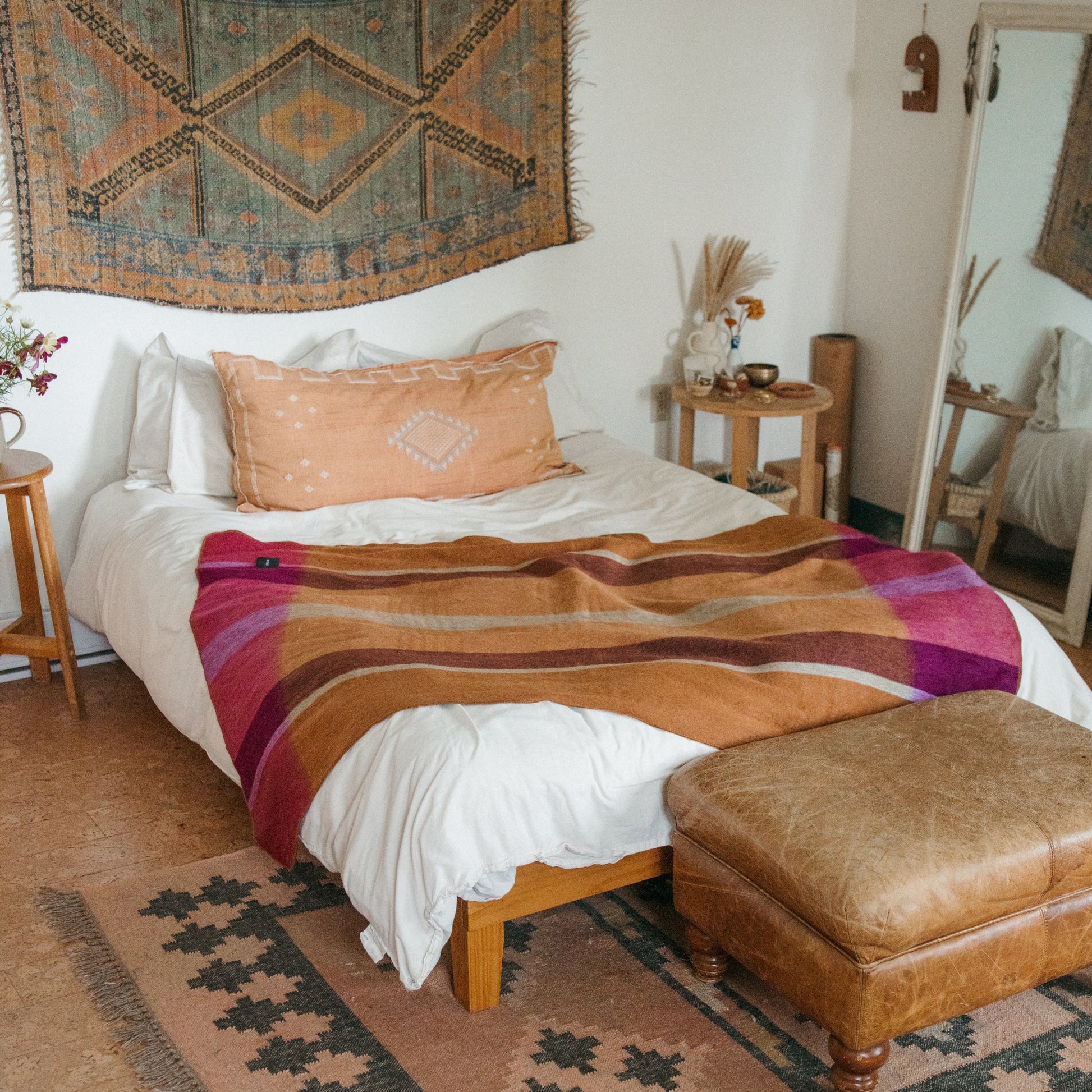 This blanket is hand-loomed, machine-woven, and then machine-brushed for added softness. This unique, artisanal blanket collection is made by a family of Indigenous artisans living in the volcanic mountains of Ecuador.