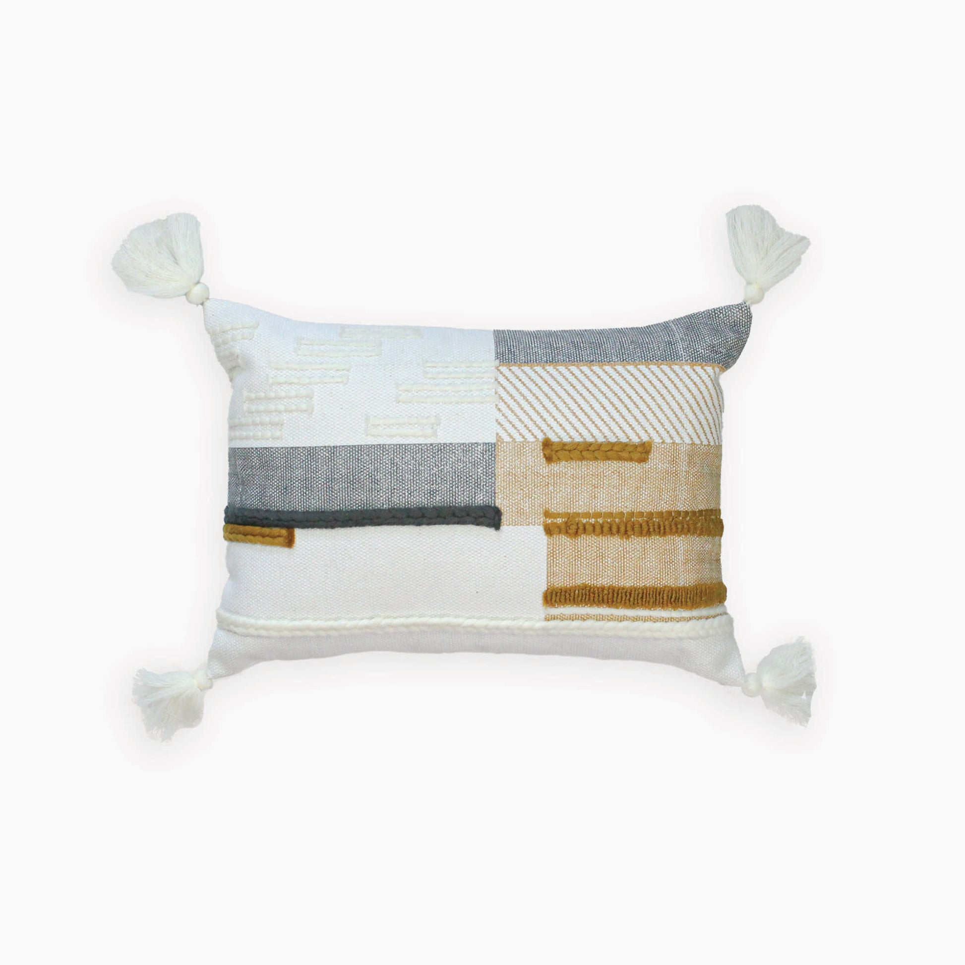 We love the elemental vibe this piece of art lends to any space - connecting earth, maker, and owner. Handmade with 100% natural cotton materials, comes with back zipper closure, and cotton tassels on each corner. Makes for the perfect housewarming gift. Lumbar pillows offer extra comfort, neck and back support.