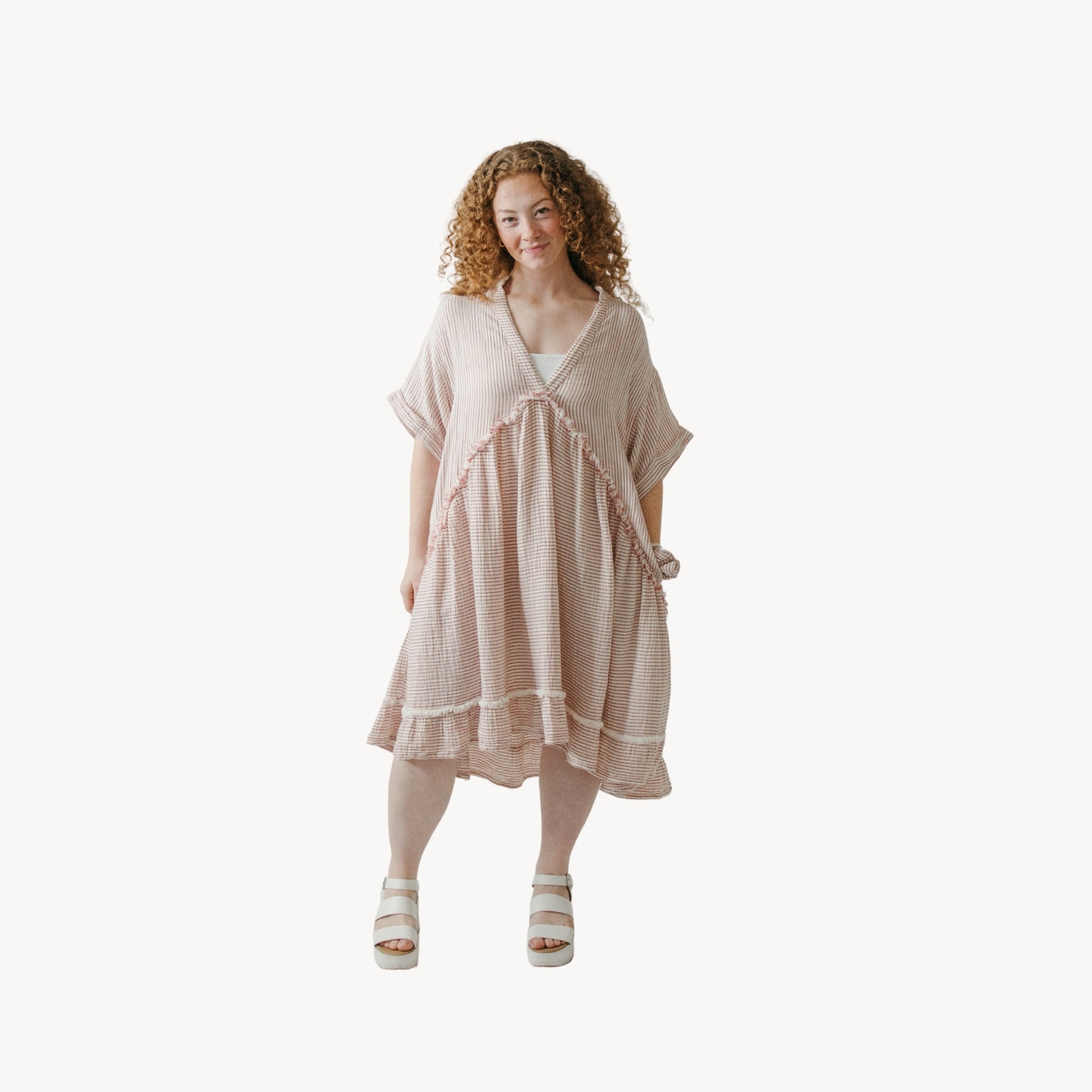 Striped Crinkle Ruffled V Dress