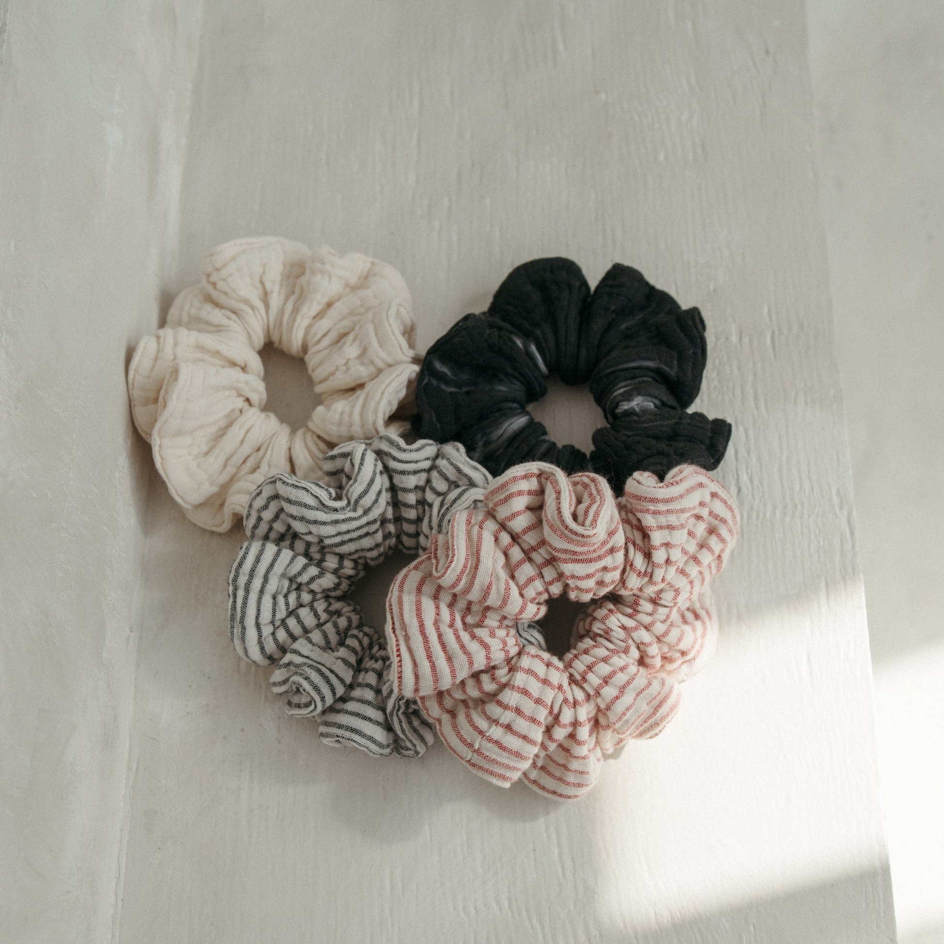 Crafted from the same 69% Crinkle Turkish Cotton, 27% viscose, 4% linen as our beloved Striped Crinkle Apparel Collection, this scrunchie brings effortless texture and softness to your hair routine. Lightweight yet durable, the breathable crinkle weave is gentle on strands, helping reduce tension and breakage while keeping your style comfortably in place.